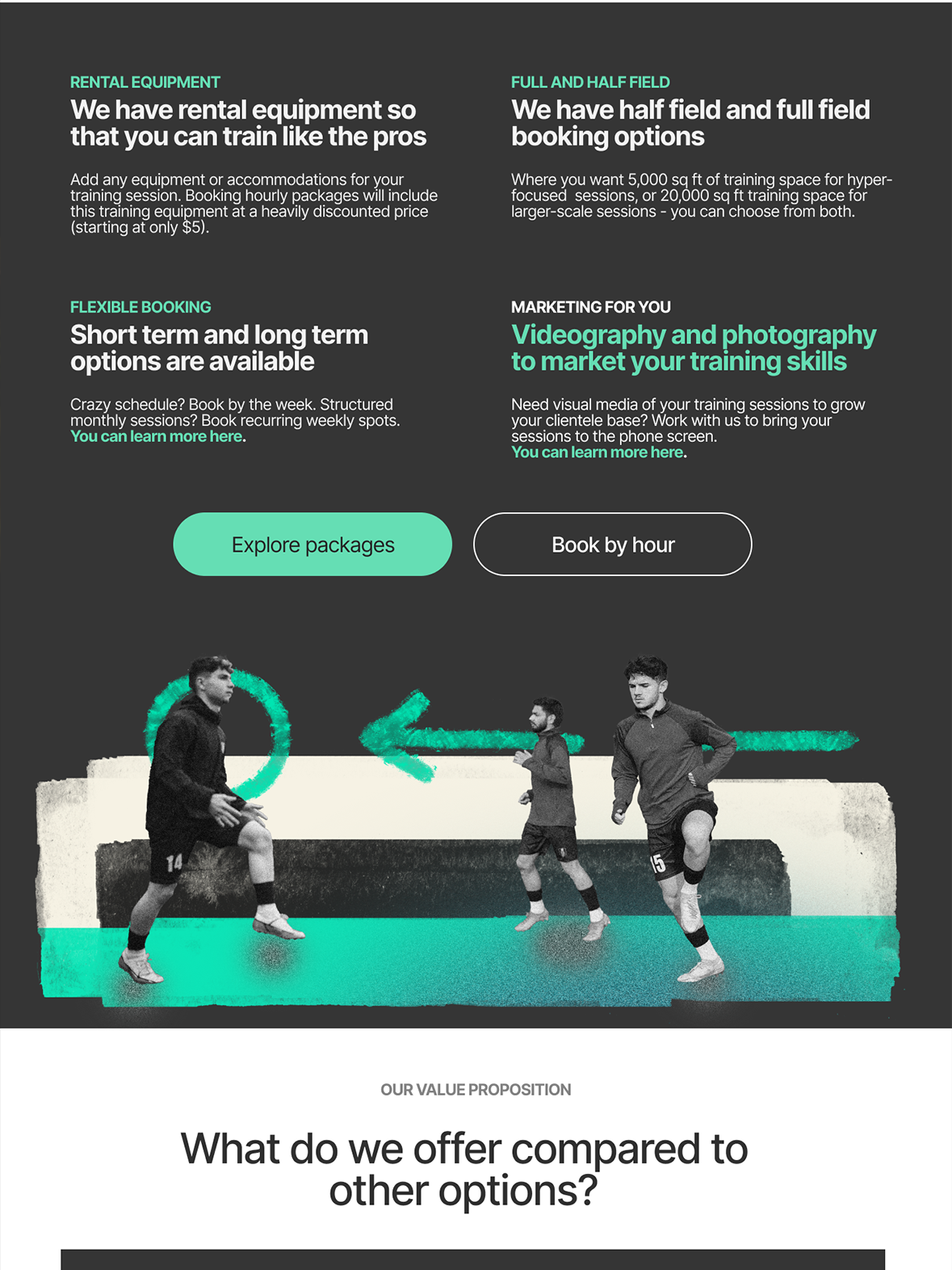 The client sought a website that would effectively promote their soccer training facility and connect with players, coaches, and trainers. The objective of this design was to create a visual identity that was simple, modern, and easy to navigate.